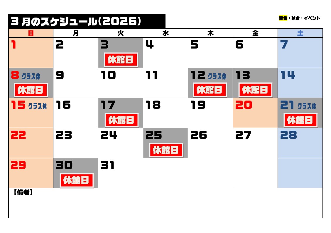 3月のスケジュール