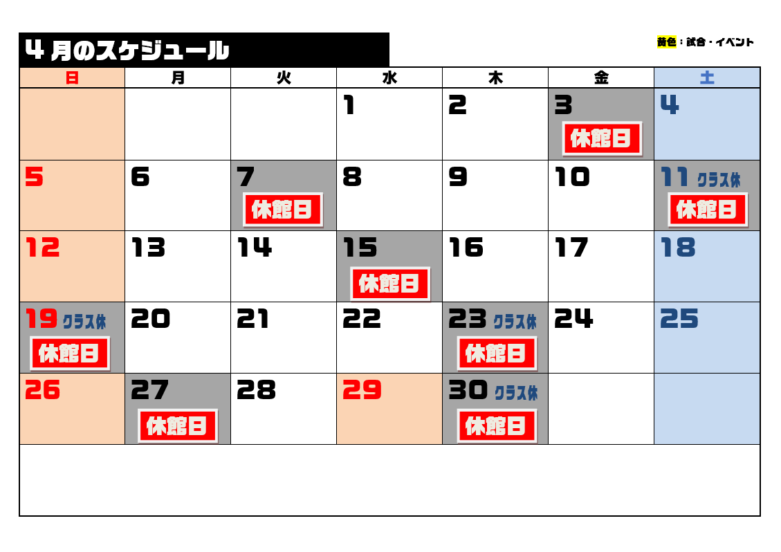 4月のスケジュール