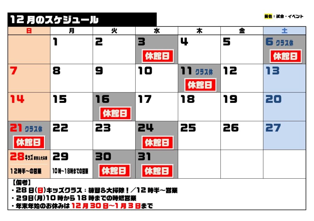 12月スケジュール