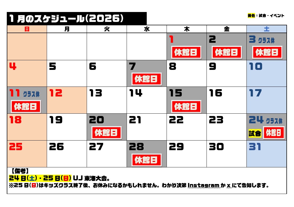 2026年1月スケジュール